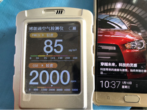 2018年1月10日下午,室內(nèi)空氣PM2.5:33,CO2仍然爆表,